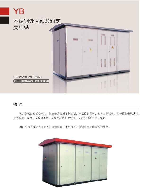 該系列預裝箱式變電站,外殼選用優良不銹鋼板,產品設計科學,制作工藝不錯。d特蜂窩通風結構,外殼牢固、隔熱、又散熱通風,造型美觀防護等級高,顯示不銹鋼的新潮。用戶可以選擇亮光或亞光不銹鋼外殼,也可以在不銹鋼外殼上噴涂各種顏色。